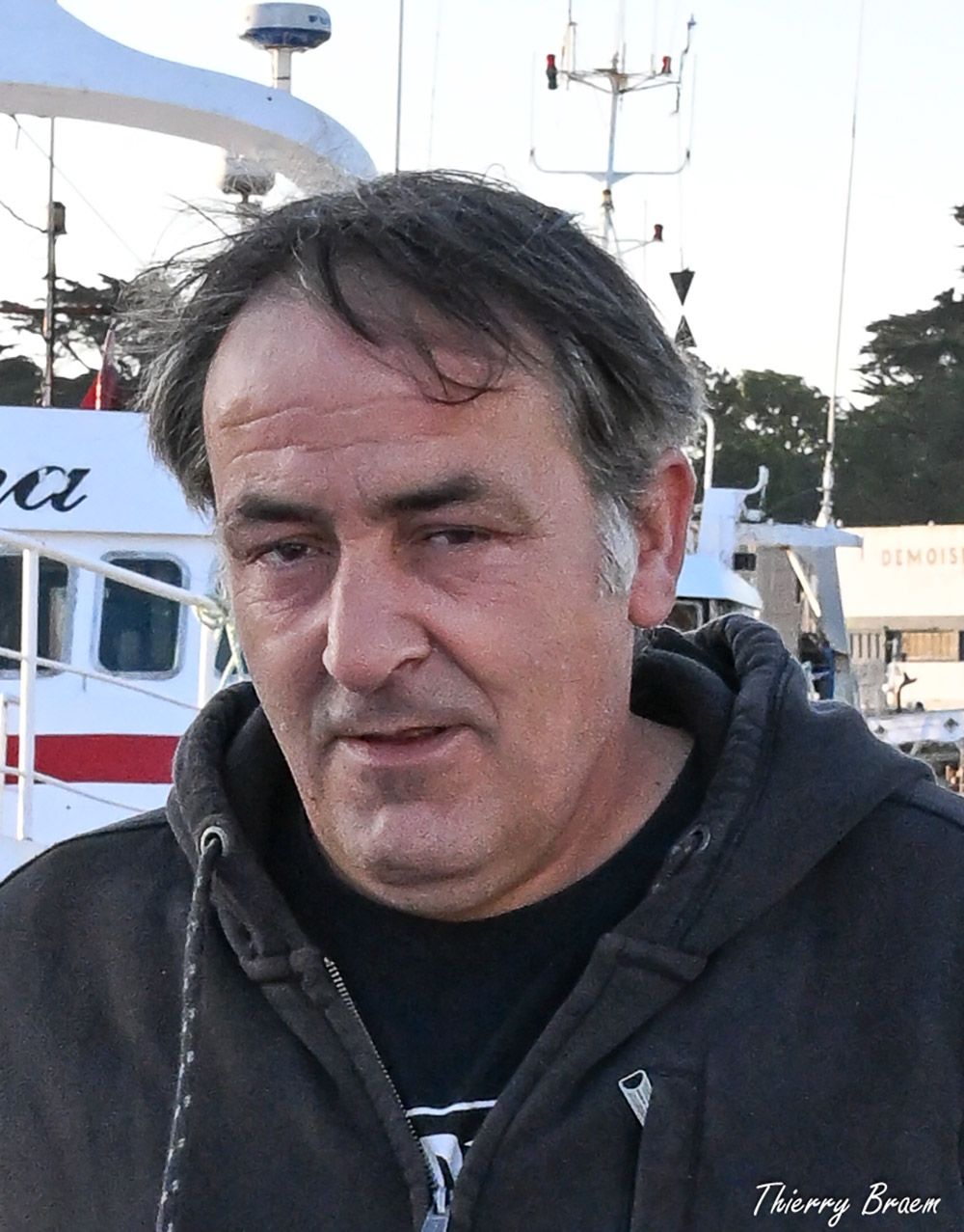 Il marche seul vers le navire, bagages en main, prêt à embarquer pour une nouvelle campagne — une nouvelle absence d’une quinzaine de jours. Une parmi tant d’autres.