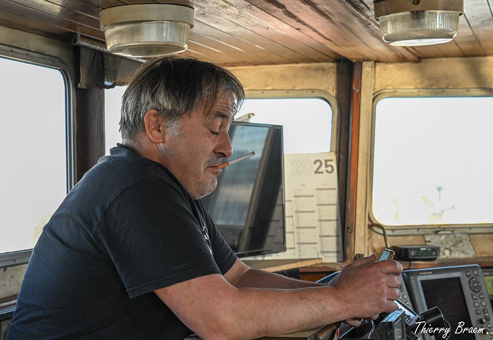 Sur le pont, Christophe, chef ramendeur, responsable de l’avitaillement, vérifie minutieusement la liste des denrées.